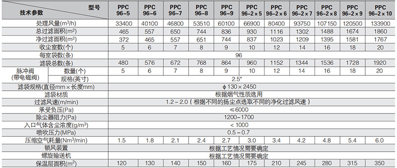 注:1、表中的凈過濾面積是指一個(gè)室清灰時(shí)的過濾面積。